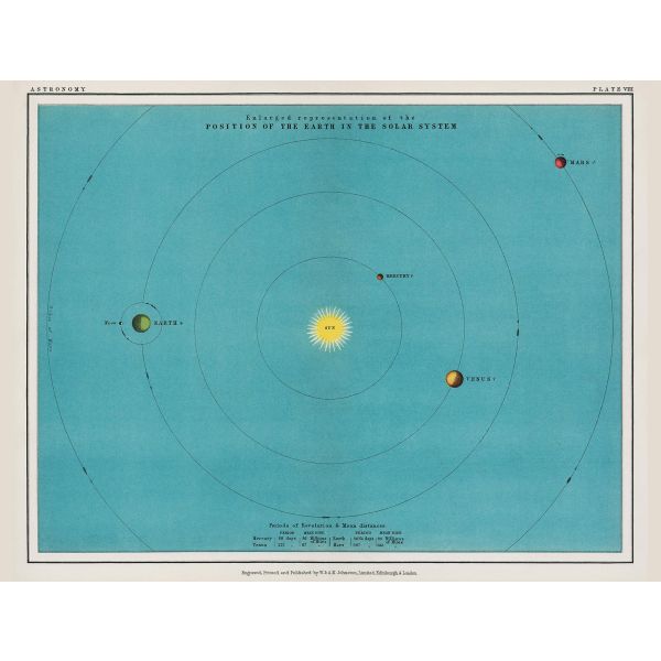 Tämä juliste kuvaa suurennetun kuvauksen Maan sijainnista aurinkokunnassa. Siinä on aurinko ja lähimmät planeetat, mukaan lukien Maa, Venus, Mars ja Merkurius. Tuote sisältää vain yhden julisteen.